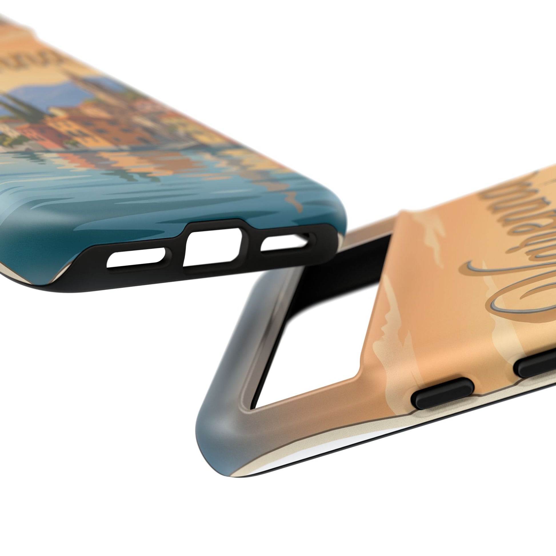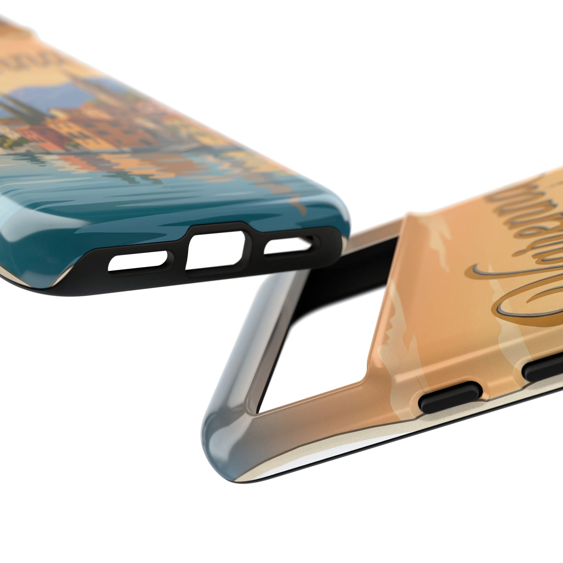 The Tough Case combines sleek design with double-layered durability, now in a special edition celebrating Varenna, Italy. Featuring the iconic “semm cumash” lettering and illustrations of the city’s most beloved landmarks – from the lakeside promenade to the cathedral and surrounding mountains – it wraps your phone in hometown pride and everyday protection. Available in both glossy and matte finishes, with wraparound prints, precise openings, and wireless charging compatibility.