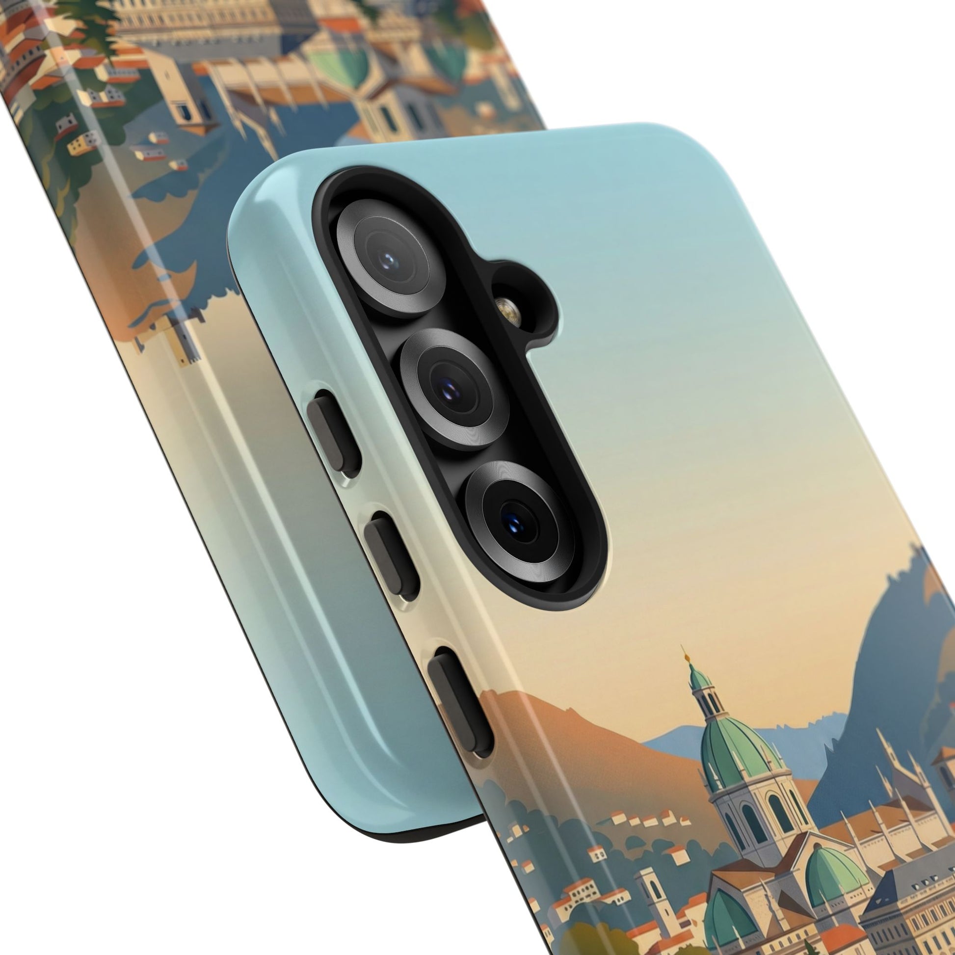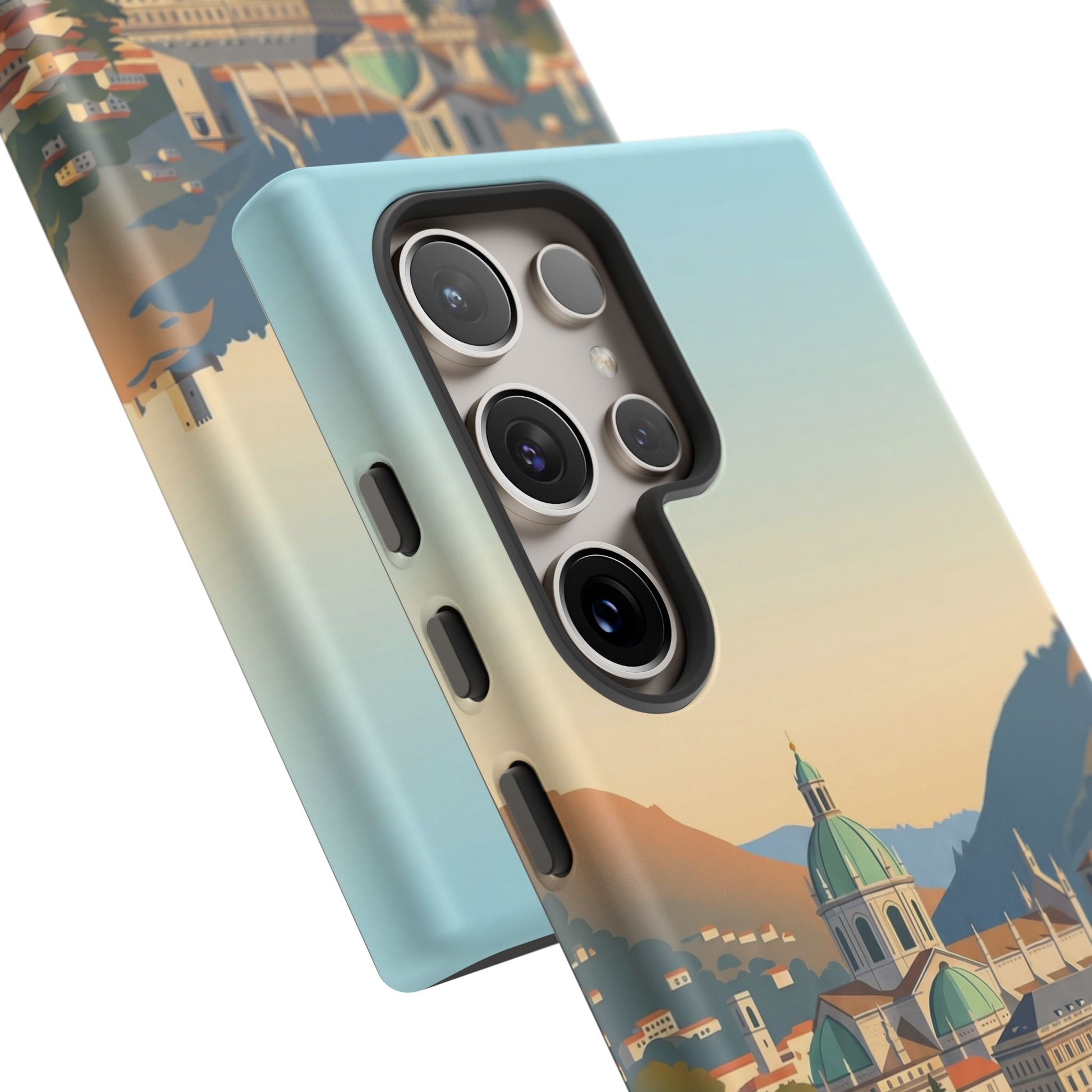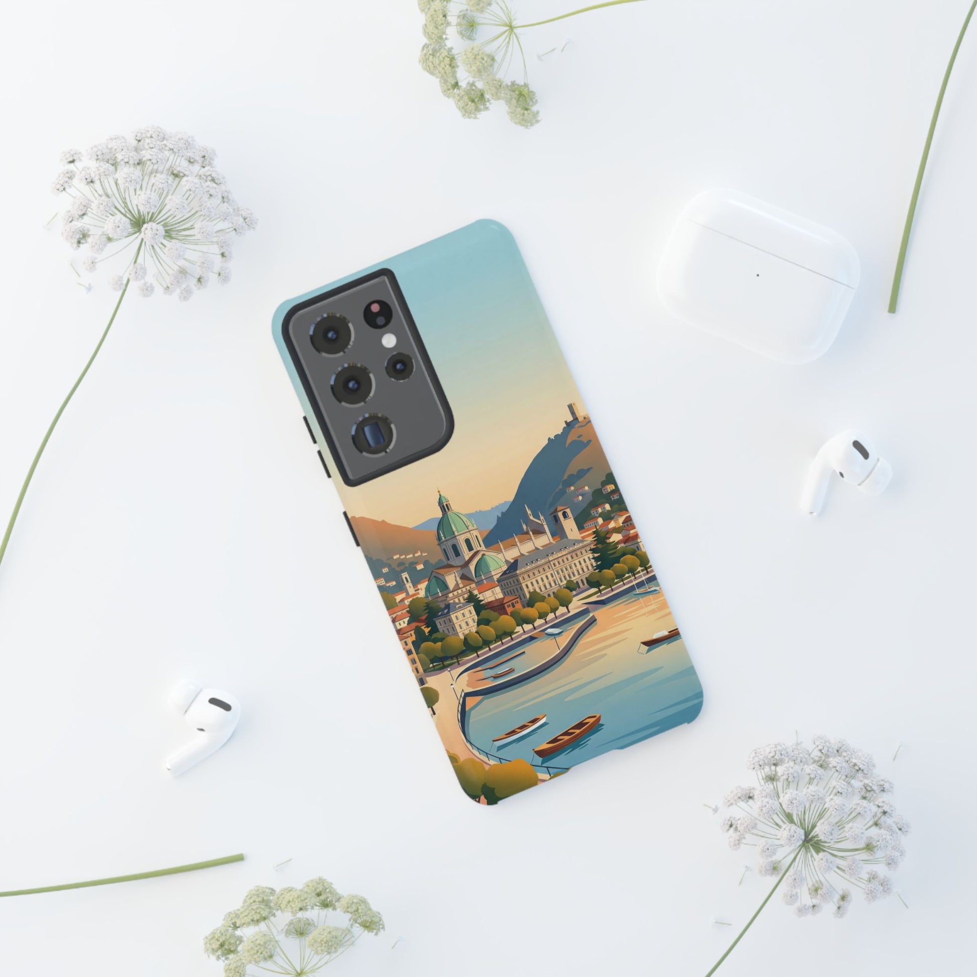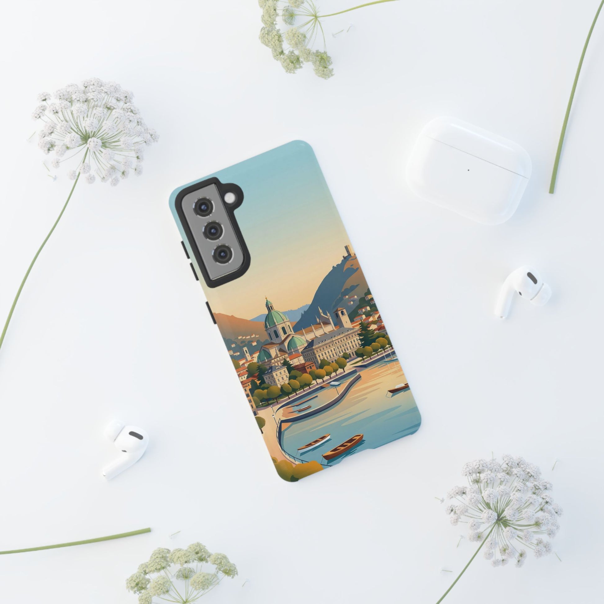 The Tough Case combines sleek design with double-layered durability, now in a special edition celebrating Como, Italy. Featuring the iconic “semm cumash” lettering and illustrations of the city’s most beloved landmarks – from the lakeside promenade to the cathedral and surrounding mountains – it wraps your phone in hometown pride and everyday protection. Available in both glossy and matte finishes, with wraparound prints, precise openings, and wireless charging compatibility.